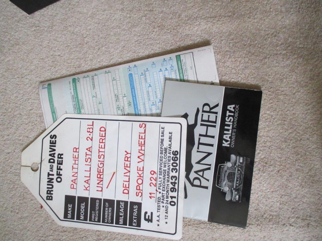 Kallista 1.6 1989, unleaded petrol, 48000 miles, silver. Comes with Kallihat and all-over cover. MOT until March 2026. It now has a year's MOT from 6/3/2025. As per Bruno Eismark "This car was built as a press car for Panther". Has new stainless steel running boards, includes Garmin satnav. Five spoked wheels. Not immaculate, but very good for age. Car is in Wells, Somerset. Phone David on 01749 671599 or email davidbath_uk@hotmail.com £10,500 ono.