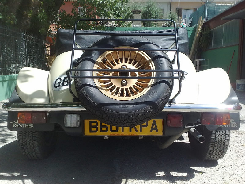 CHROME SPOKE WHEELS WITH CONTINENTAL 195 x 60 x 14 TYRES ONLY 2500 MILES FROM NEW WITH PANTHER CENTRE CAPS. ALL IN STAINLESS STEEL – BADGE BAR AND BADGES, BUMPERS, EXHAUST, MESH RADIATOR GRILL, RUNNING BOARDS AND BOOT RACK. CHROME SPOT LIGHTS AND CHROME STONEGUARDS.